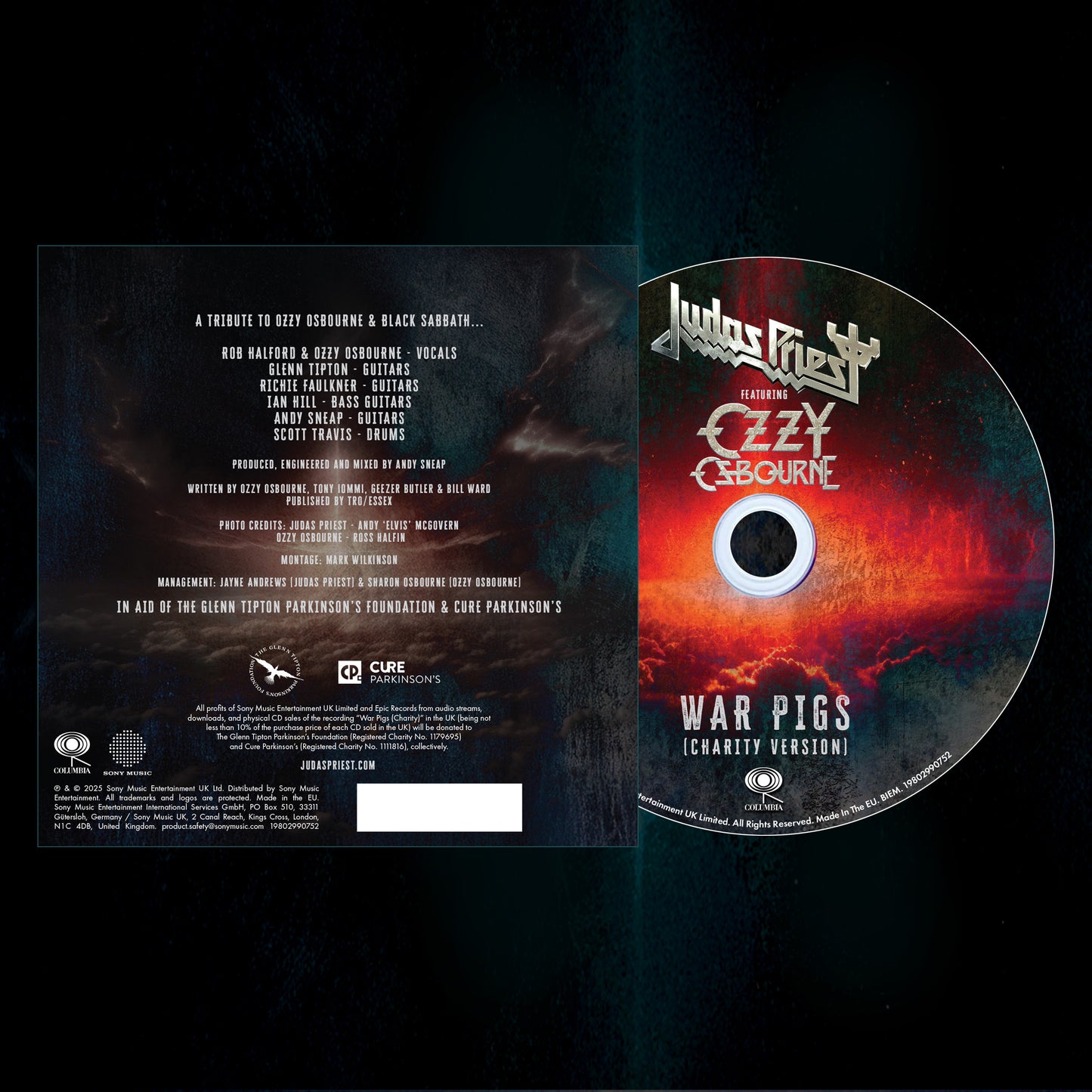 A collaboration between the icons Judas Priest and Ozzy Osbourne. All profits of Sony Music Entertainment UK Ltd and Epic Records in the UK from audio streams, downloads, and physical sales of the recording ‘War Pigs (Charity)’ will be donated to The Glenn Tipton Parkinson’s Foundation and Cure Parkinson’s.